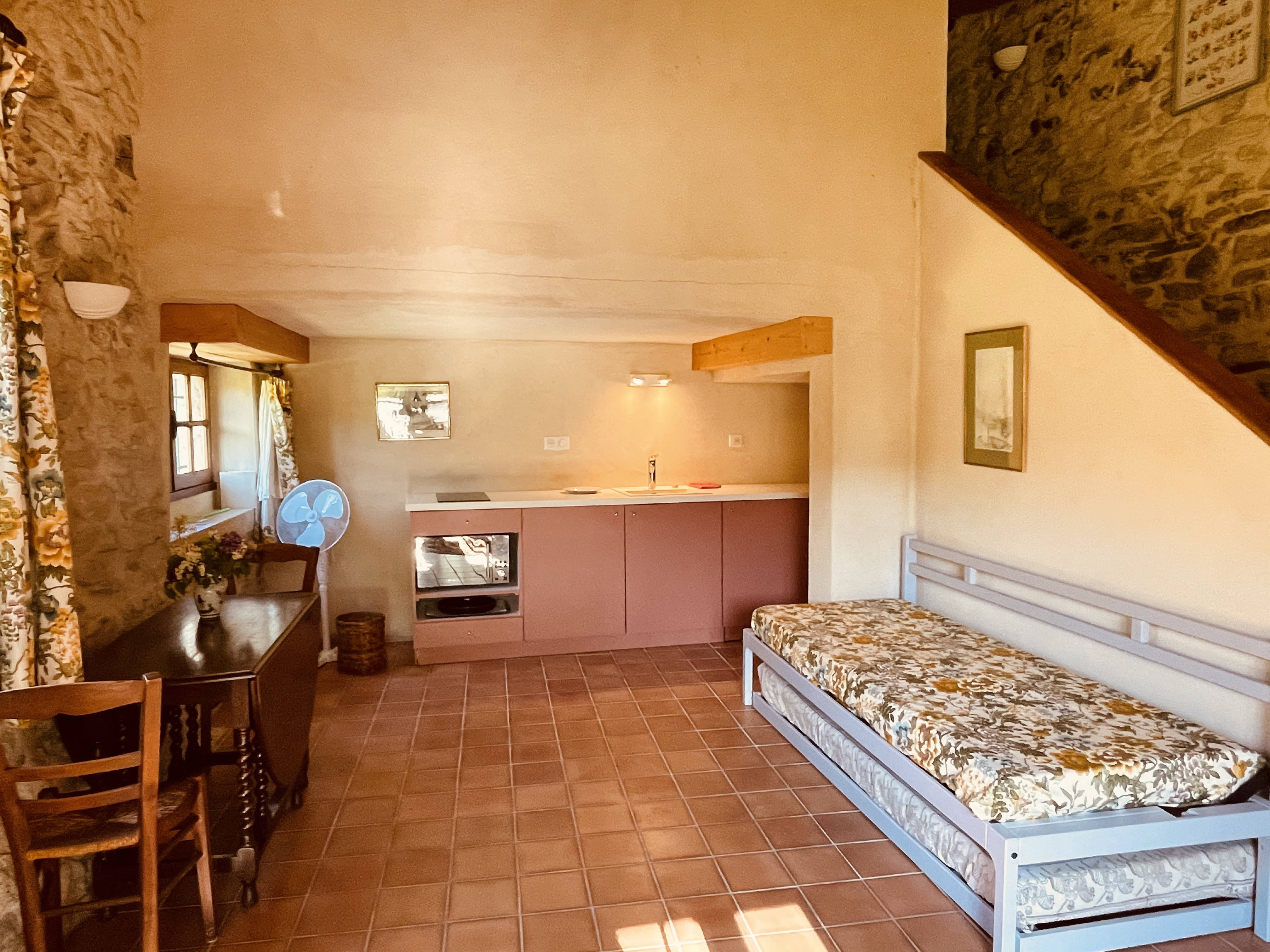 Au rez-de-chaussée, une pièce à vivre ouverte à l’Ouest avec kitchenette et un « lit-canapé gigogne ».
